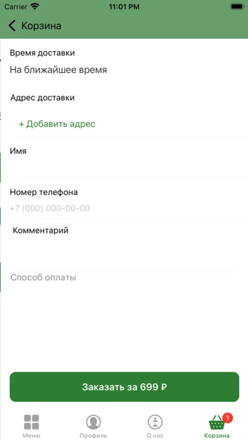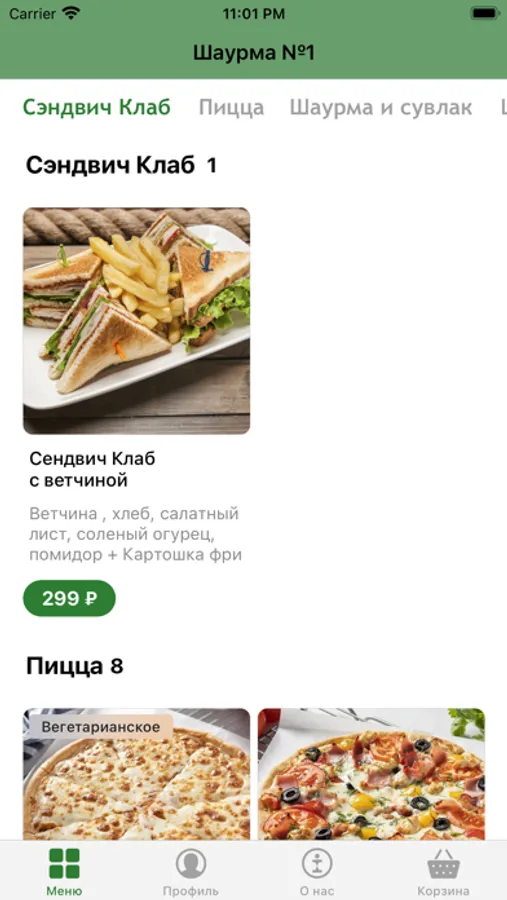 В нашем приложении вы можете заказать шаурму, пиццу и другую еду с доставкой или самовывозом
