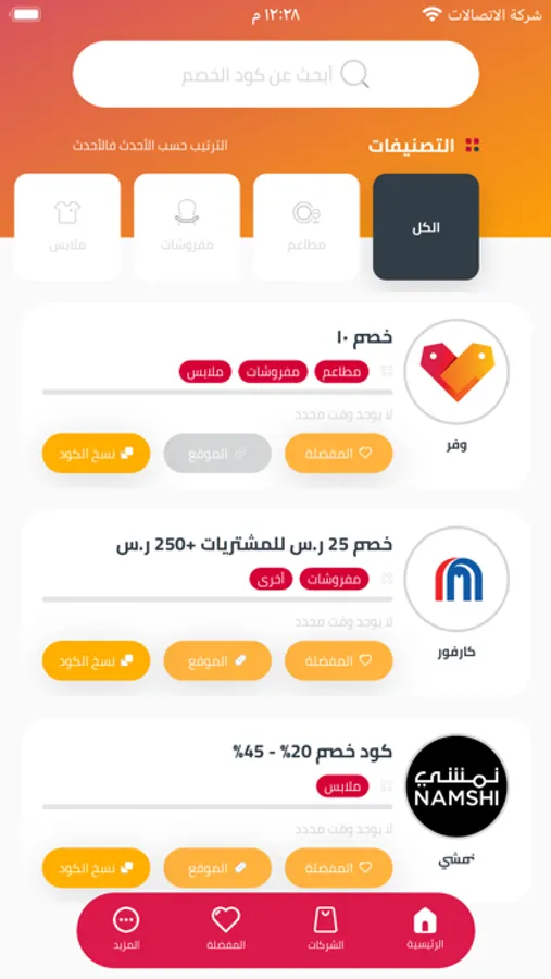 * توفر البحث عن الكوبونات والشركات في التطبيق بسهولة