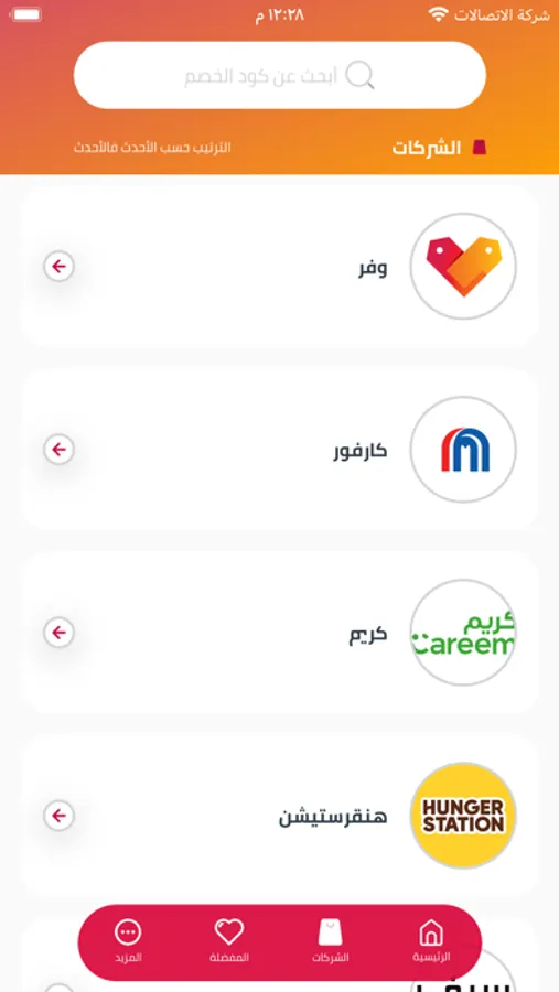 * تصفح الشركات الموجودة في التطبيق والدخول لتفاصيل الشركة لمشاهدة الكوبونات الخاصة بهم