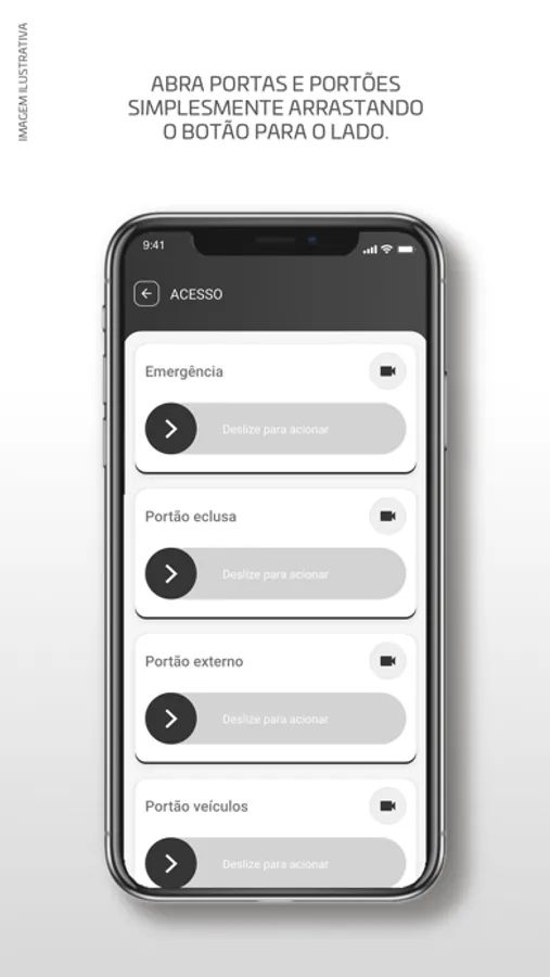 Possibilidade de acionamento dos portões com agilidade e segurança.