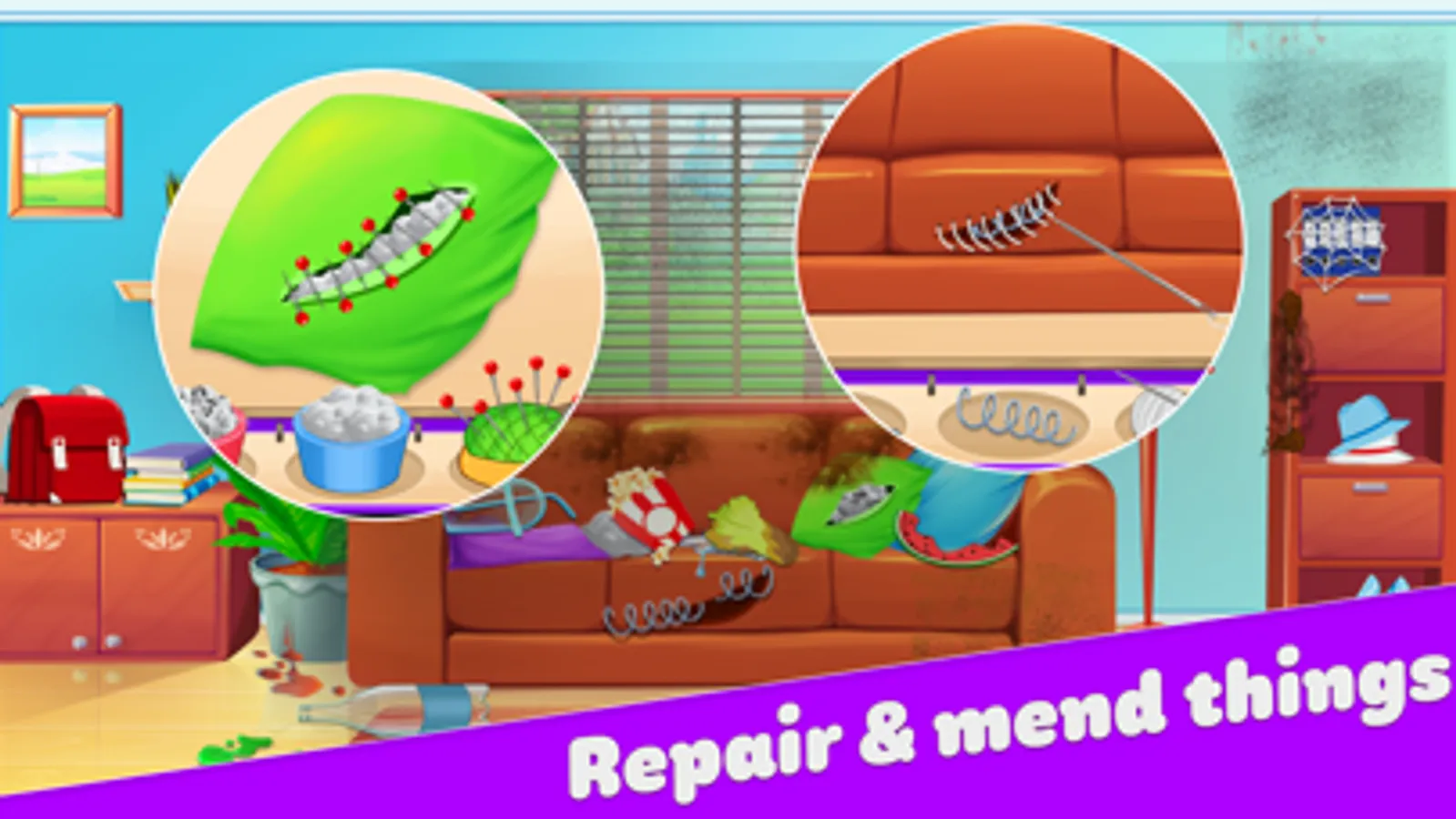 Who likes the messed-up place? No one right! Well in this house cleanup game you will enjoy doing the cleaning tasks to make your home and garden a good place to visit. You will find many things messed up and scattered or even broken. You have to take care of everything right from dusting, cleaning, moping and repairing things. Rearrange things to their original position and make it a clean place.