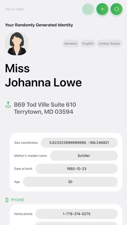 * Fake Identity Generator (name set, address, gender, county, extra info)