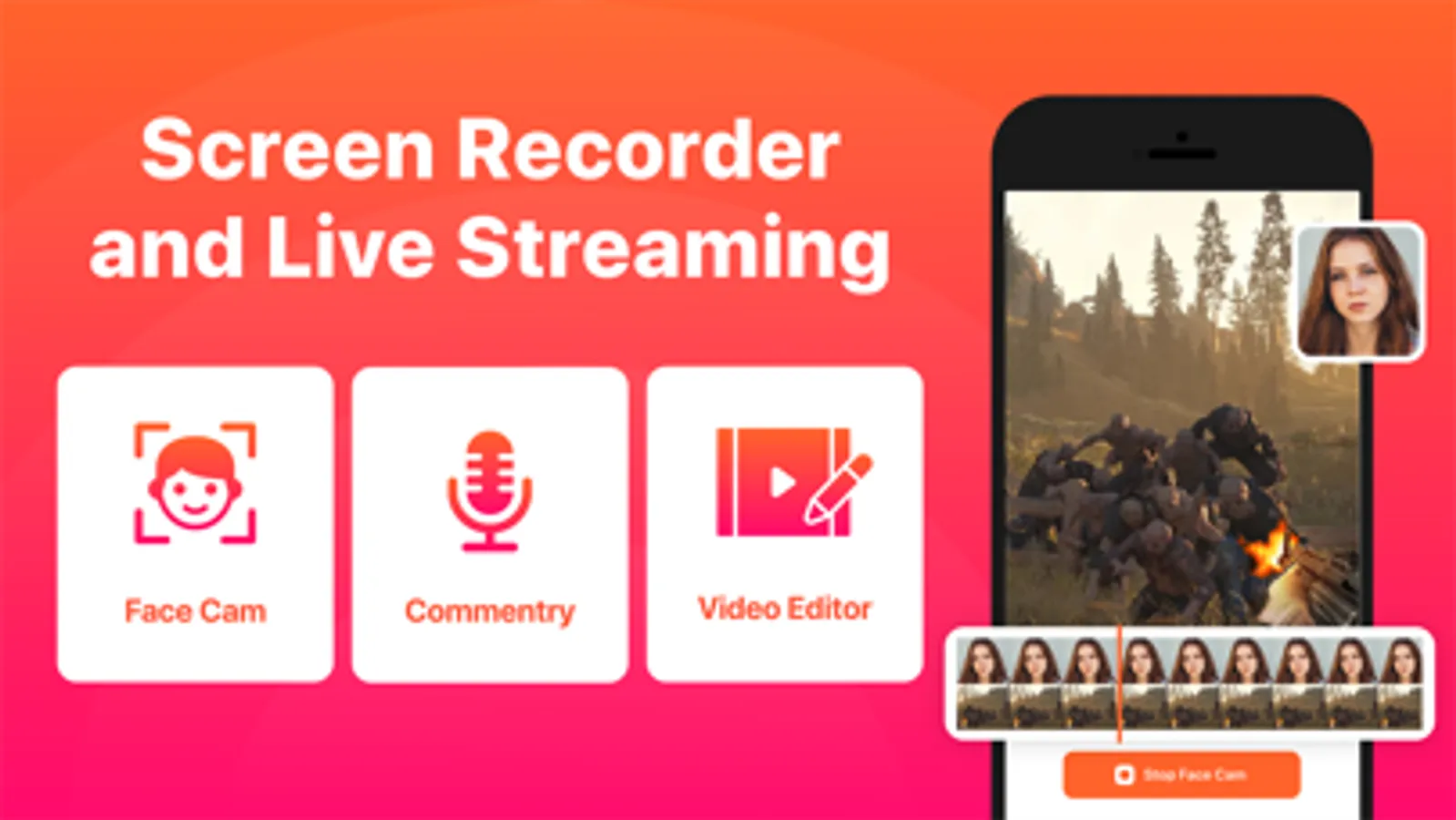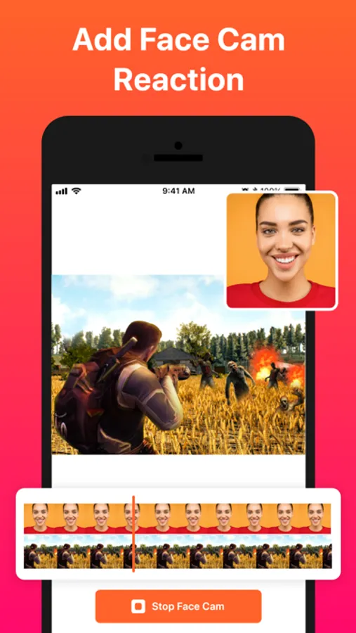 Facecam : Add FaceCam Reactions to your recordings. Record your reaction by setting the position and size.