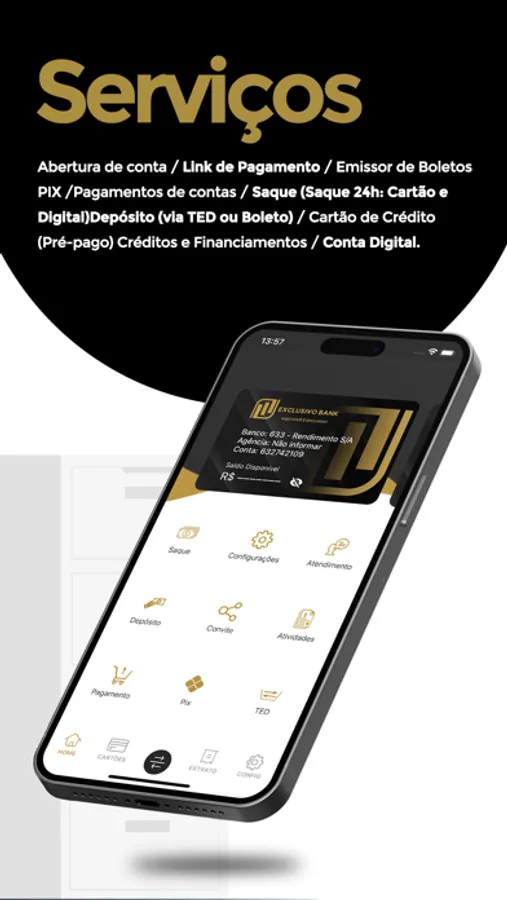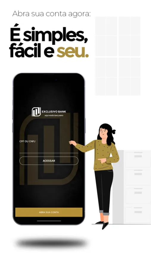 "Abra sua conta digital no Exclusivo Bank. Evoluímos cada vez mais para que você tenha a melhor experiência, O Exclusivo Bank oferece uma conta corrente completa e totalmente gratuita!