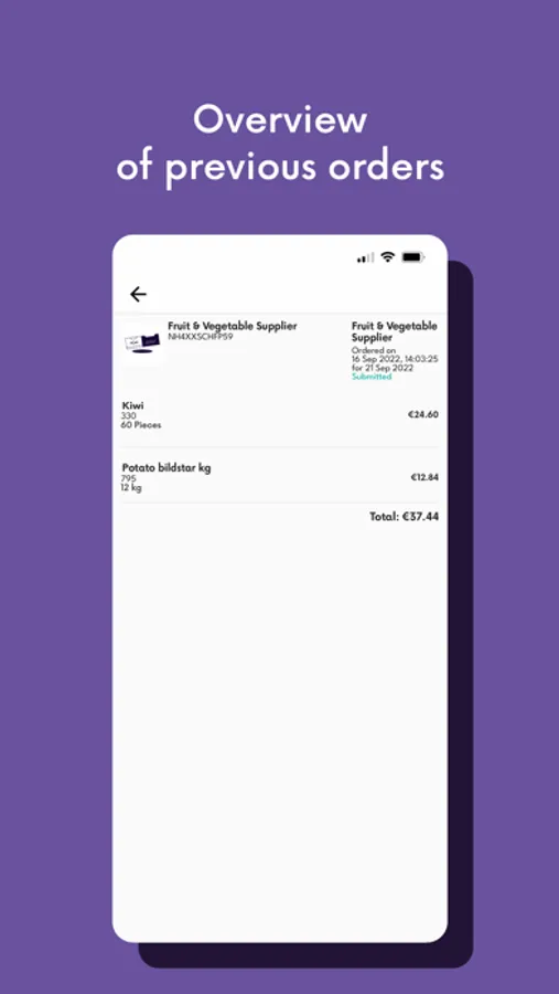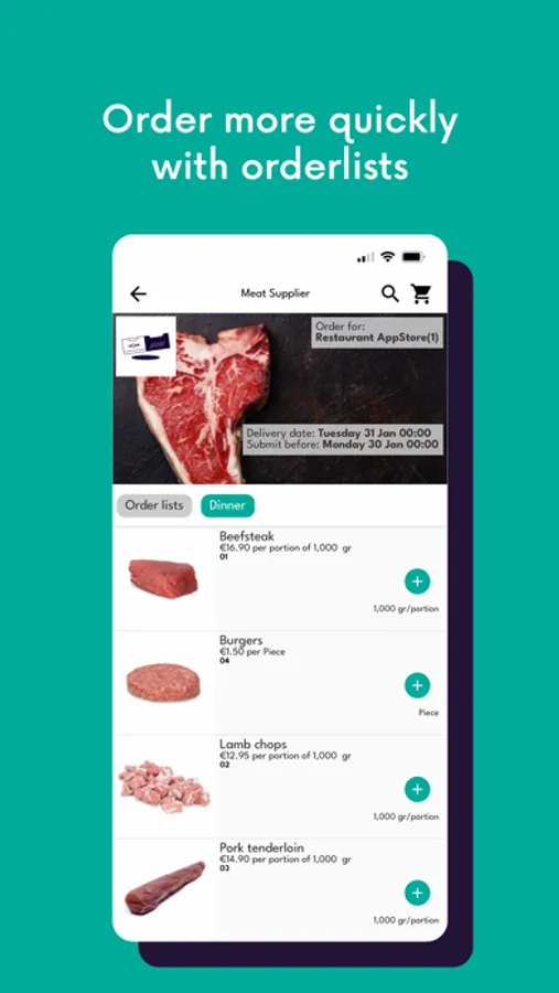 The free inOne application is created for hospitality & retail, for fresh food suppliers, wholesale businesses and manufacturers. This app provides you the functionality to place your orders at all your suppliers who are inOne connected. Besides that, you can easily manage your order lists, giving you insight into your order history and reviewing your invoices.