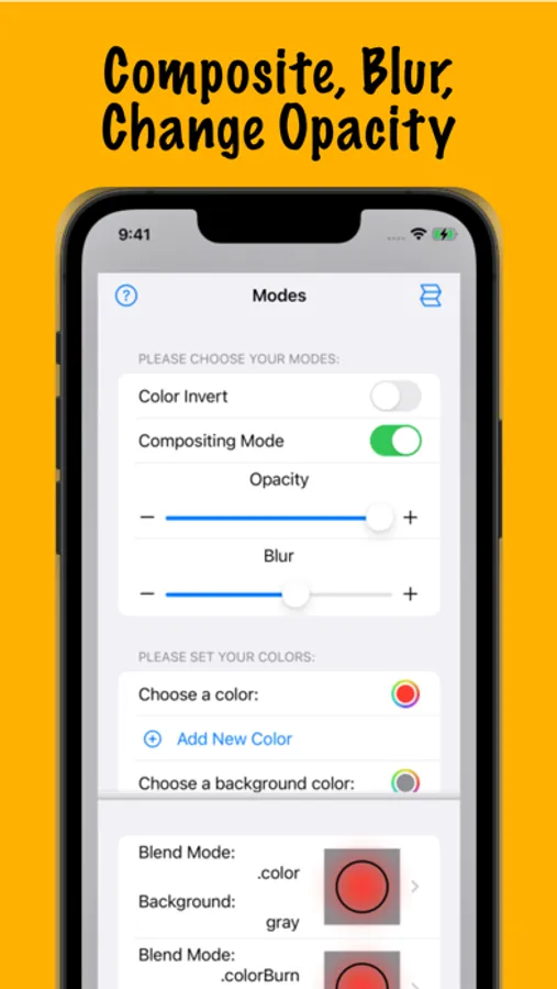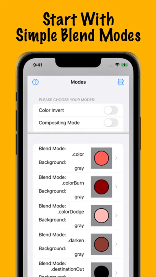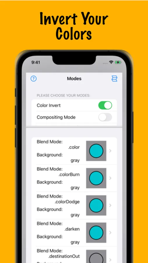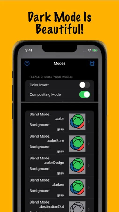 While exploring how to use Blend Modes, I decided to create a simple app that demonstrated the interactions. This app is handy to have when deciding how you want your UI to look. Simply adjusting simple toggles and sliders shows you the interactions between bland modes, color inverts, compositing group, blur and opacity. Use this to quickly determine how these controls interact to make your UI look the way you want.