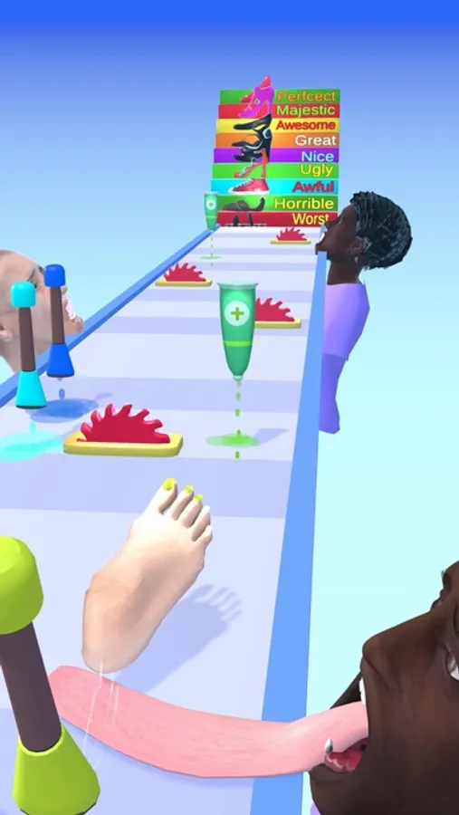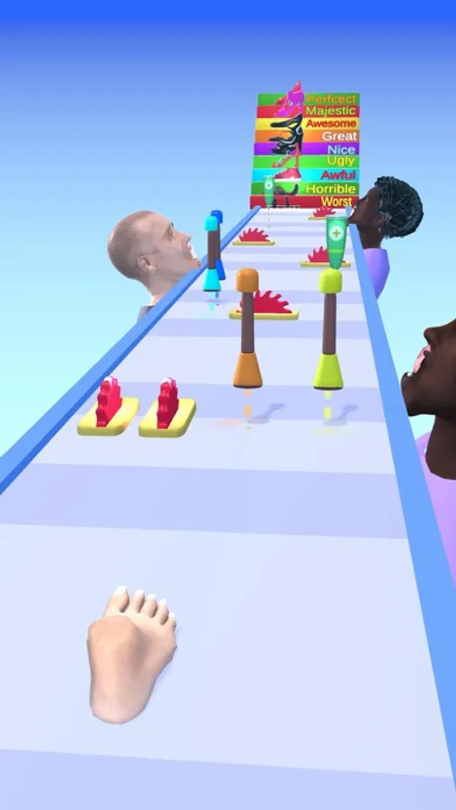 Get ready for having your foot care! Quickly run around the circle saws, go under nail paints to get your toenails colored. You may get hurt, but don't worry, healing ointments and pastes will be waiting for you to use and fix your foot. The better your foot's condition, the fancier shoe you'll earn the right to wear!