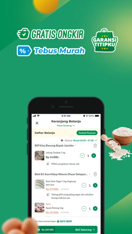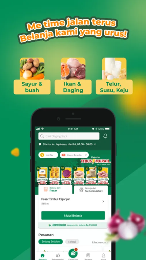 Kamu bisa bebas pergi ke pasar di pagi hari dan menggantikan waktu tersebut dengan Me Time, hati akan lebih senang lagi dengan promo menarik yang akan membuat belanja kamu jadi lebih hemat!