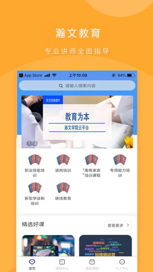瀚文教育APP是广东省瀚文职业培训学院移动学习平台,域名:http://www.gdhwxy.com是一家专门做职业技能提升培训的线上服务机构,为了为职业技能线上培训做出我们的贡献,我公司特邀请相关专家,老师,录制了大量的优质课件,有企业适岗线上培训课程:包括岗前培训,在岗培训,专项培训;有职业技能线上培训课程,中式面点师,中式烹调师,钳工,车工,电工,焊工,汽车维修工,健康管理师,人力资源管理等,还有新型学徒制线上培训课程等。本平台以“提升职业技能、服务社会”为宗旨,以市场用工需求为导向,按照“高起点、高目标、高质量”的原则,向全社会提供优质的培训服务。