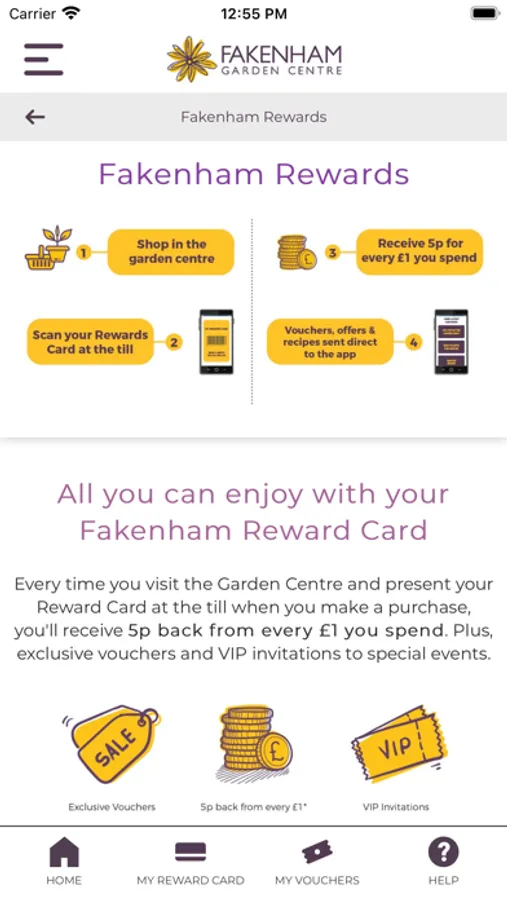 Scan your reward card within the app every time you shop at Fakenham Garden Centre to earn 5p for every £1 spent.