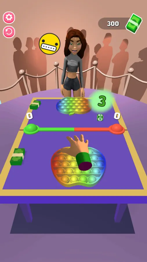 Throw a dice to pop the bubble! Beat your enemies and pop your Pop It first! Compete with different characters in a new type of battle!