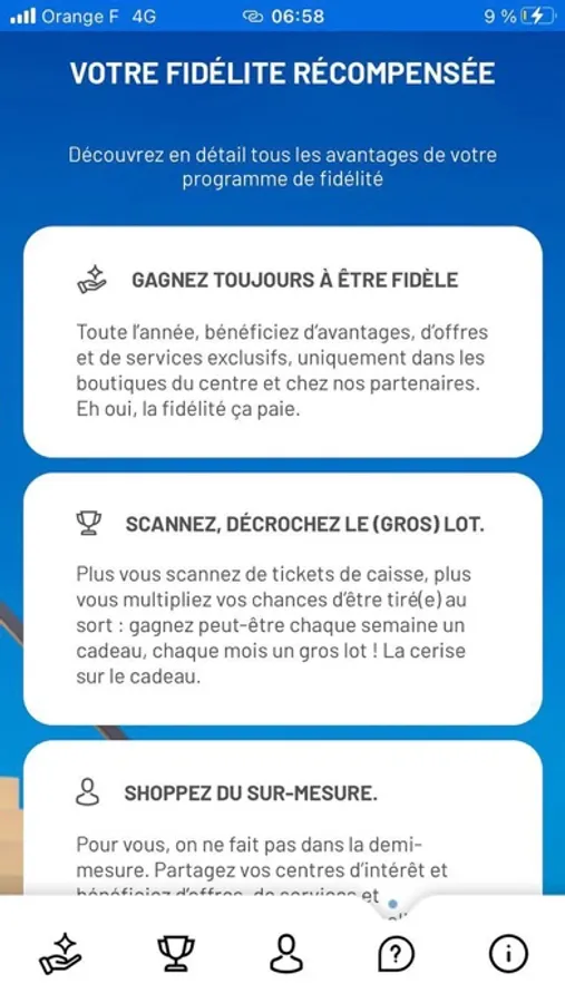 Nous avons conçu une application sur-mesure pour vous assurer une expérience personnalisée. Vous pourrez identifier vos centres d’intérêt et bénéficier d’offres exclusives de vos enseignes favorites.