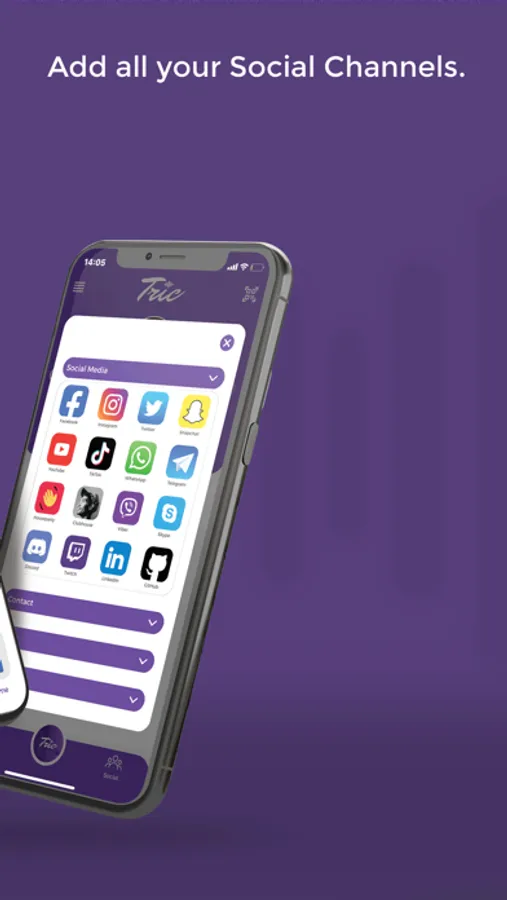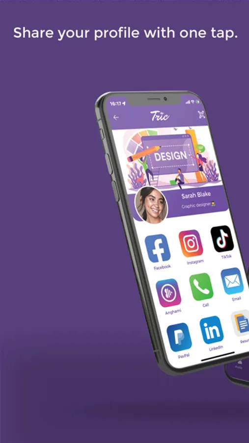 In our Tric app, you can create unlimited profiles with different info using one tag. You can create a profile for personal info, business info, and more, and customize them as you want. Our app allows you to easily and quickly manage your profiles and choose which one to share. You can also turn limit button on to only share one link at a time instead of sharing your whole profile.