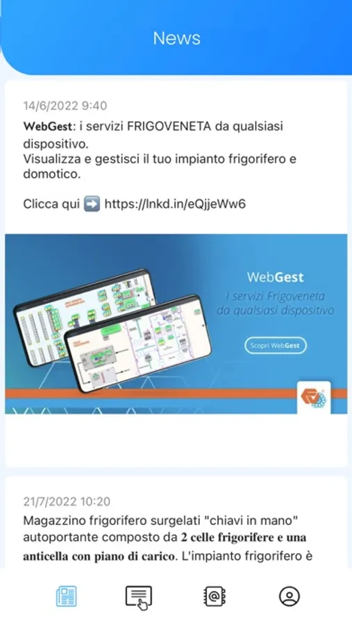 WebGest, l'app che ti consente di visualizzare e gestire il tuo impianto frigorifero e domotico FRIGOVENETA e di fruire appieno di tutti i servizi remoti del mondo FRIGOVENETA.