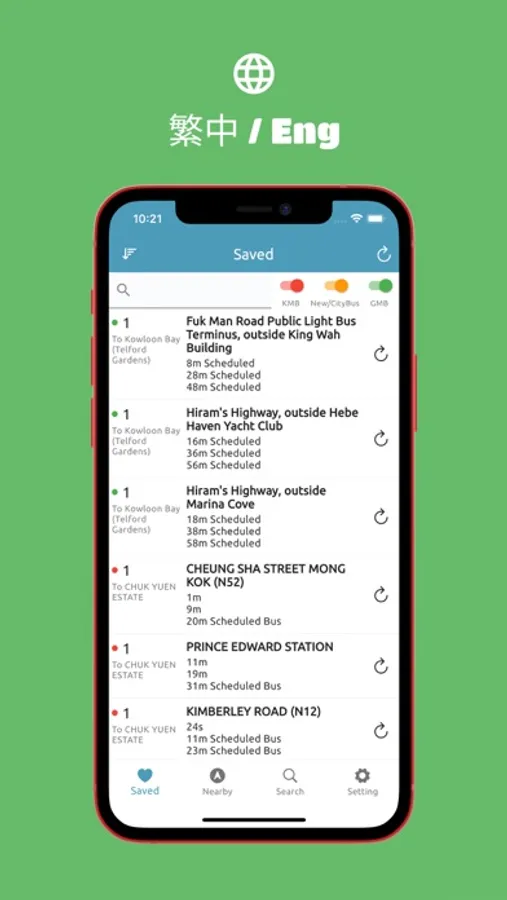ETA Combo integrates the ETA for KMB, Citybus, and GMB, allowing you to easily check the arrival time of various buses.