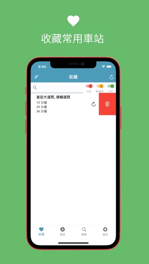 支持收藏車站、搜尋附近車站路綠。