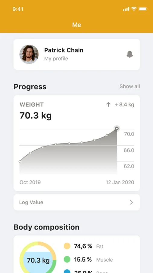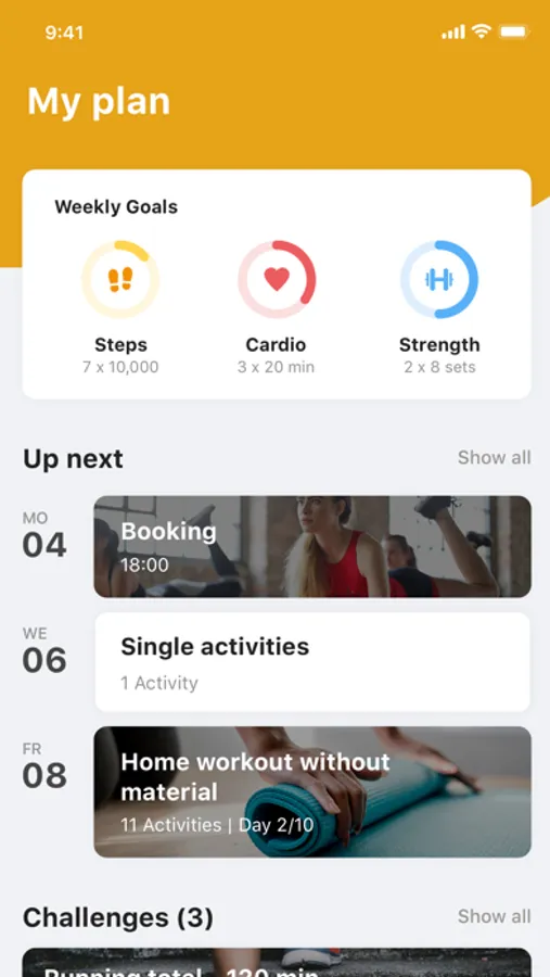 Sie können diese App mit dem Apple Health App synchronisieren. Wenn Sie diese Übertragung aktivieren, wird jedes Training aus der Health App automatisch zu Ihrem Aktivitätskalender hinzugefügt.