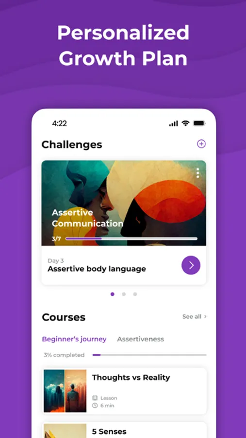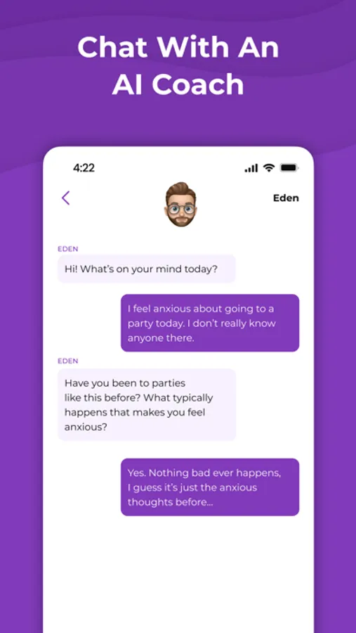 - Chat about anything that is on your mind with Eden - an advanced AI that is always there to support you on your journey