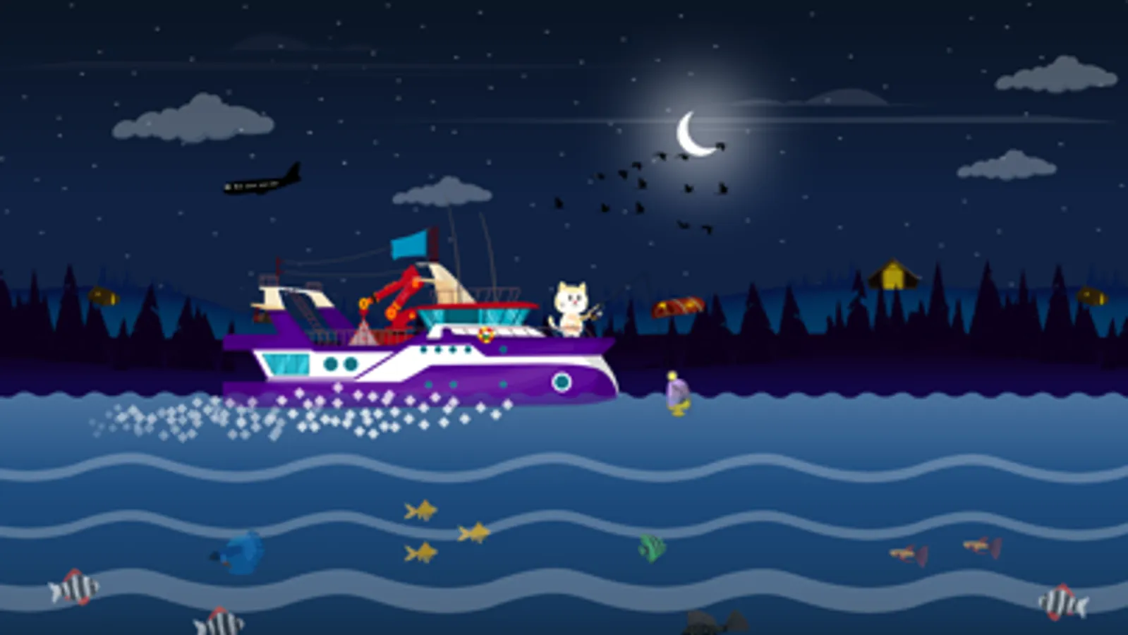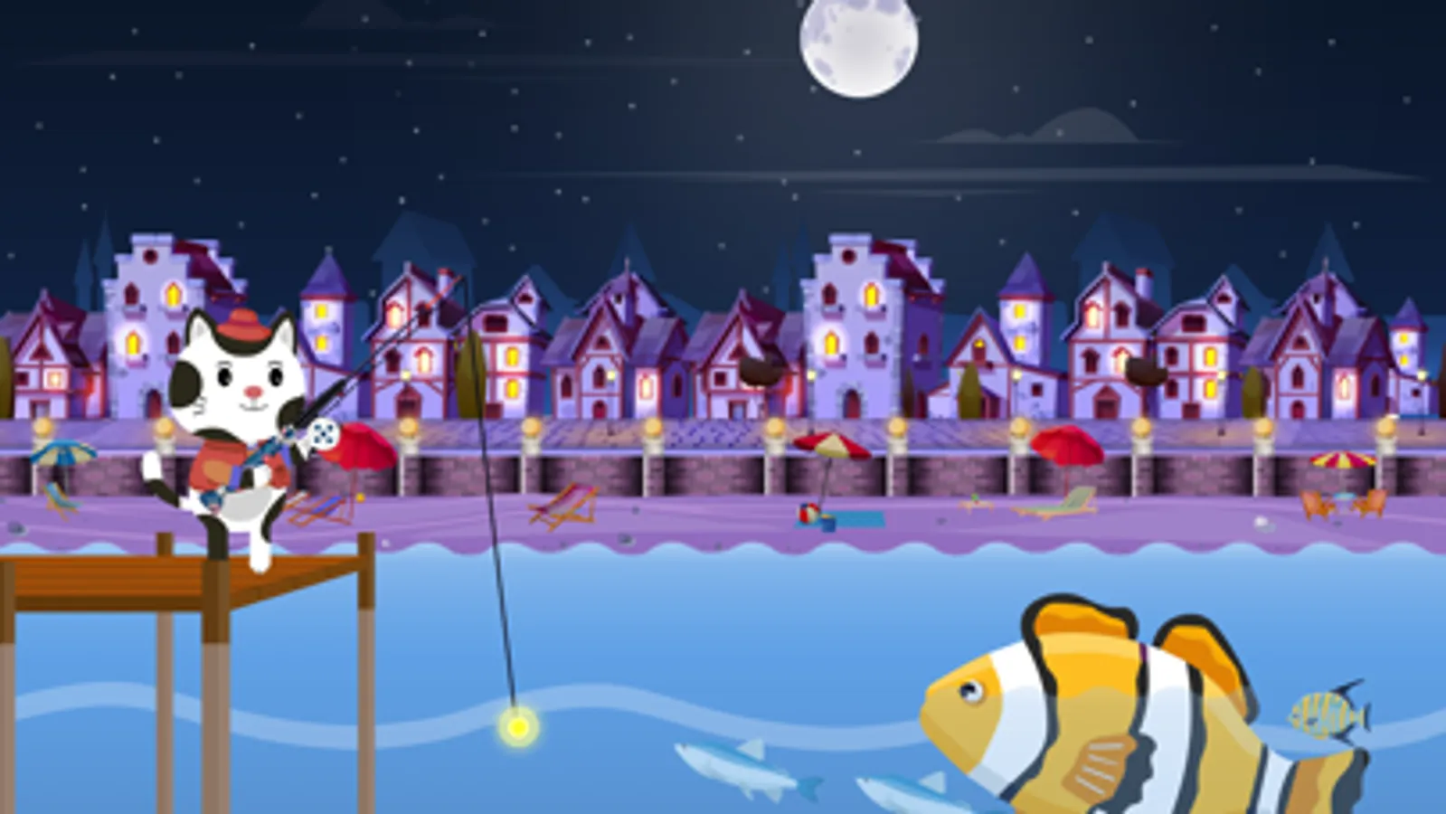 This peaceful fishing game is about cat. A game in which a Cat goes fishing at the beautiful sea. Start out on an island with nothing more than a basic rod. Customize your rod with upgrades to catch the biggest and baddest fish.