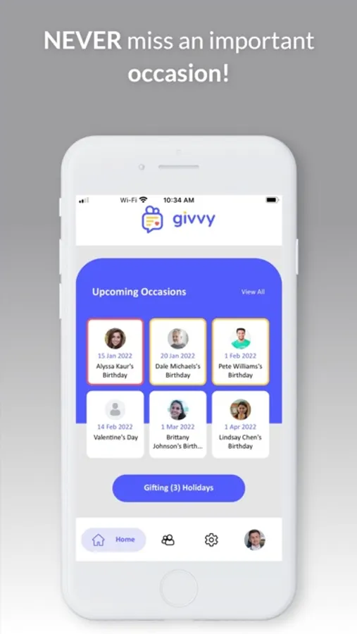 · Givvy keeps track of occasions for you.