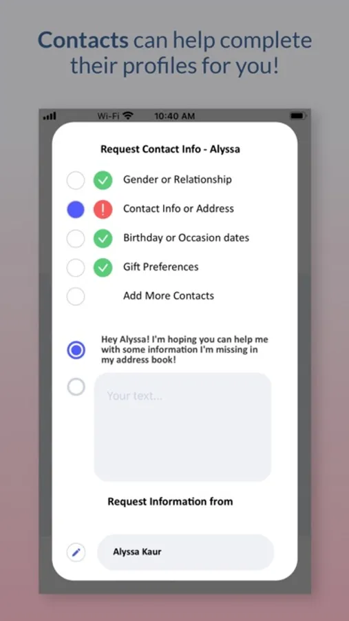 · Contacts can help you complete their profile.
