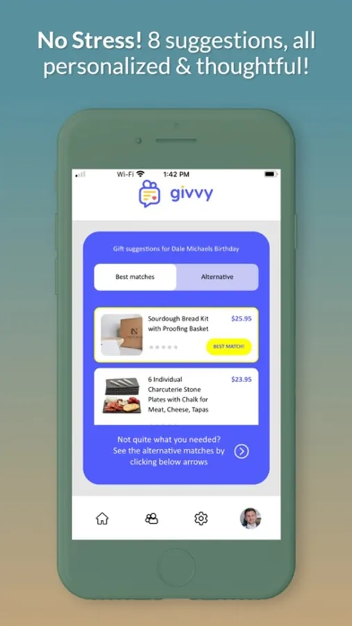 · If Givvy can’t give you options we’re confident in, we assign a real professional shopper for your specific occasion at no additional cost.