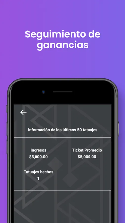 Seguimiento de ingresos mensuales: ¿Quieren tener un mejor control de las finanzas de su estudio? Con nuestra app, podrán monitorear sus ingresos de manera precisa y detallada. Registren las ganancias de cada sesión de tatuaje y visualicen fácilmente los datos en gráficos intuitivos, permitiéndoles tomar decisiones financieras más informadas.