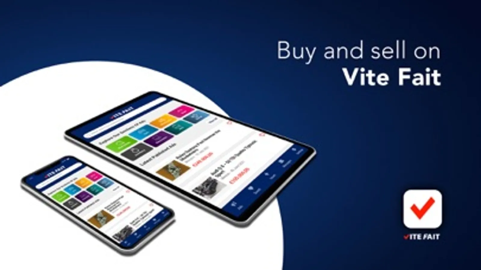 Sell and buy easily, quickly and securely. Do it now on the official Vite Fait app.
