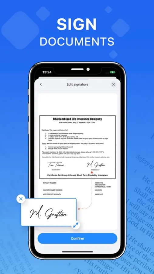 Scanner : Scan and sign pdf app will maximize your document management efficiency : a mobile scanner for your smartphone, to change paper into PDF, while saving both time and storage.