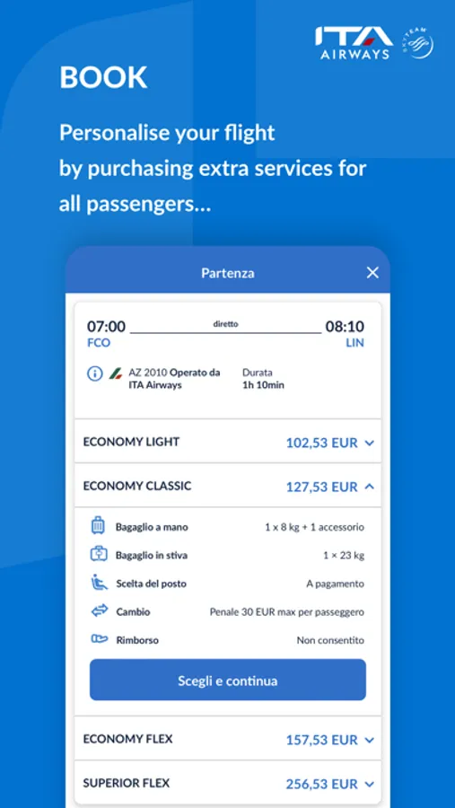 Choose your flights and purchase your tickets for all destinations operated by ITA Airways and also for destinations operated by our partners.