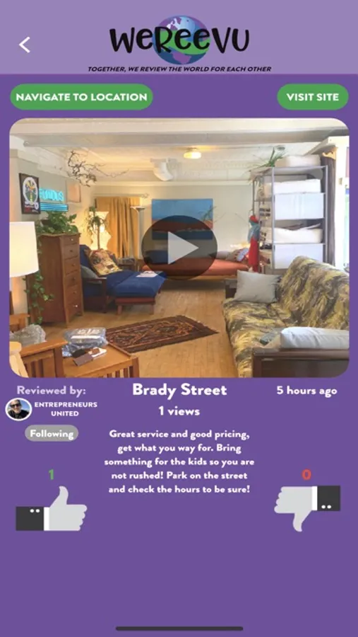 An app for you to leave clear video reviews, fewer words describing your experience, and pictures to help capture your moments. The app also allows for you to easily locate the reviews near you. You can Geo-locate your travels and share the best way to explore, visit, eat, or shop at the places you go! Show your tour, your adventure, or your favorite spot. Help a small business grow or a city thrive. This is Social Media videos combined with geo-located reviews of the world! You can review Food, Entertainment, Travel, or small businesses.