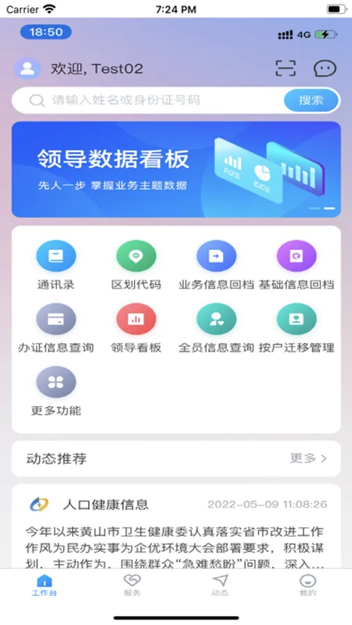 工作人员使用自己注册的手机号登录后,使用各模块已授权的账号进行首次授权绑定,则可进入相应模块的进行业务办理。APP包含“全员人口”、“协会基金会”、“托育服务”、“老龄健康”等4大模块,已基本涵盖人口相关工作,全省各级相关工作人员登录后,可实现相关模块的在线提交、审查、办理等相关业务。
