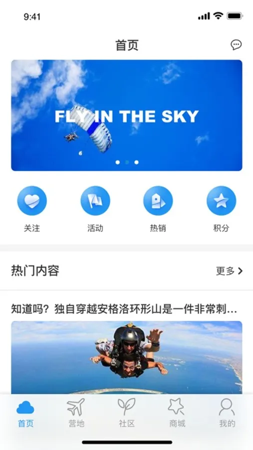 Upper是一款聚合航空体育运动社交和电商于一体的社交类应用,用户通过注册登录可在平台社区中浏览和发布帖子,加入俱乐部,创建飞行营地,参加活动,对帖子进行点赞和评论等操作,也可以购买运动用具。