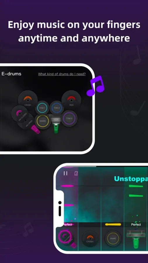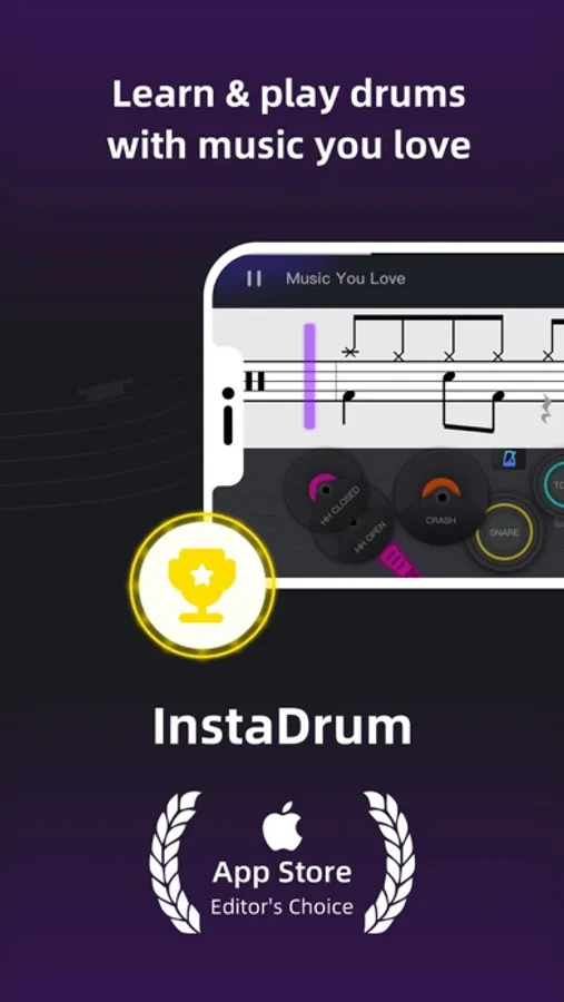 Experience a fun and easy approach to learning drums with InstaDrum, an app that's compatible with all electronic drums and even functions without one. Whether you have a drum set, a roll-up pad, or a drum machine, InstaDrum works seamlessly with them all. If you don't have a drum? No problem. Our on-screen virtual drum lets you explore music right at your fingertips. Just relax and play along with your favorite tunes, or grab your drumsticks for a musical cardio workout.