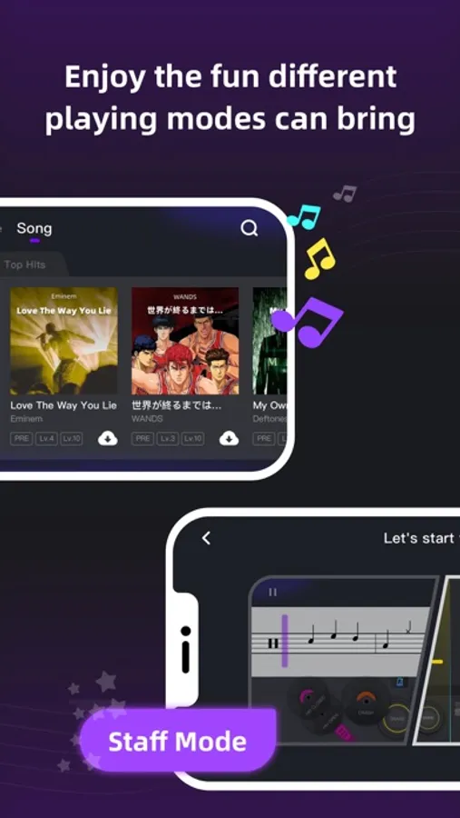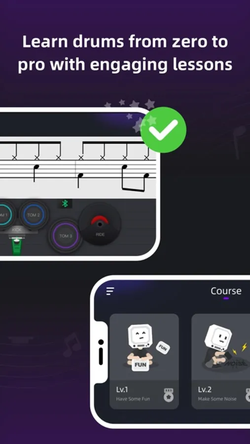 - It offers real drum notation and full-length sheet music, equipping you with skills to read music even outside the app.