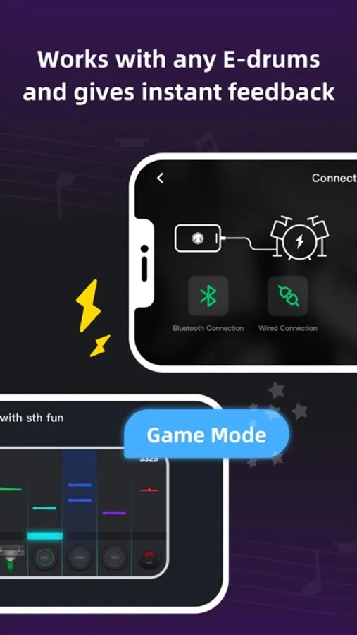 - It integrates with any electronic drums via Bluetooth or cable, providing real-time feedback on your performance.