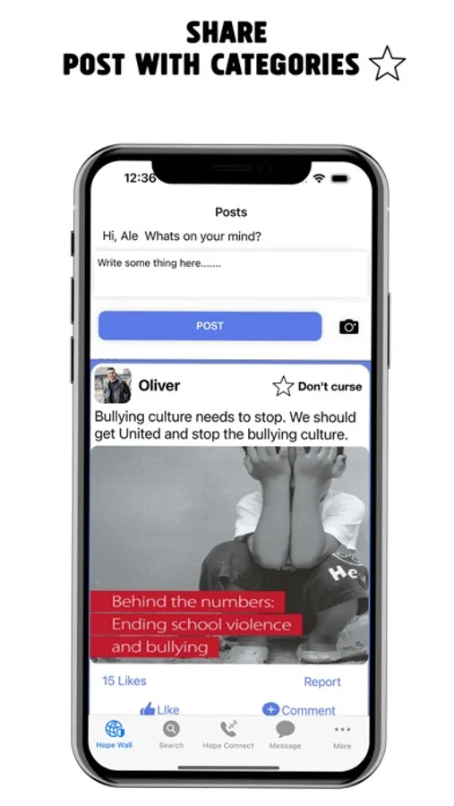Scroll your Hope Wall on Hayy and like and comment on posts that are relevant to you. Give support where due, and search for relevant content by keywords with our “Search” feature.