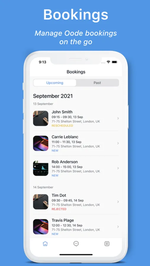 Never miss a new booking or order while on the go. Oode app notifies you of meeting changes and lets you chat with your clients also out-of-office.
