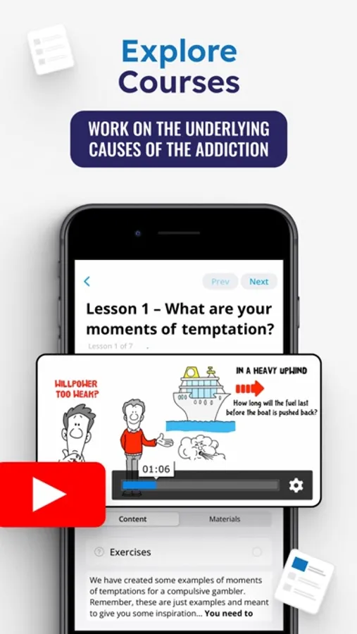 The community is a useful support tool for helping with gambling, but the real work is done in the free online courses/programs. We’ve designed this course to target sources of pain and eliminate them in an engaging, challenging, and fun way.