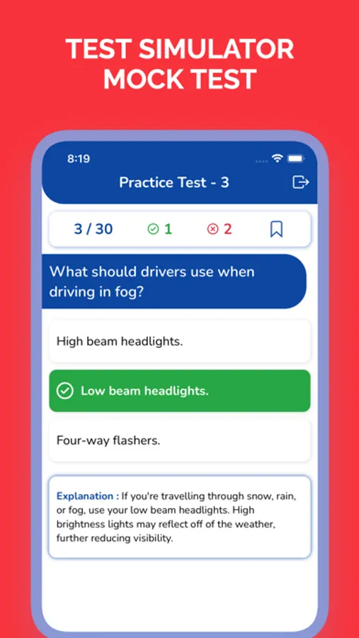 - Keep your progress for each practice test and view history.
