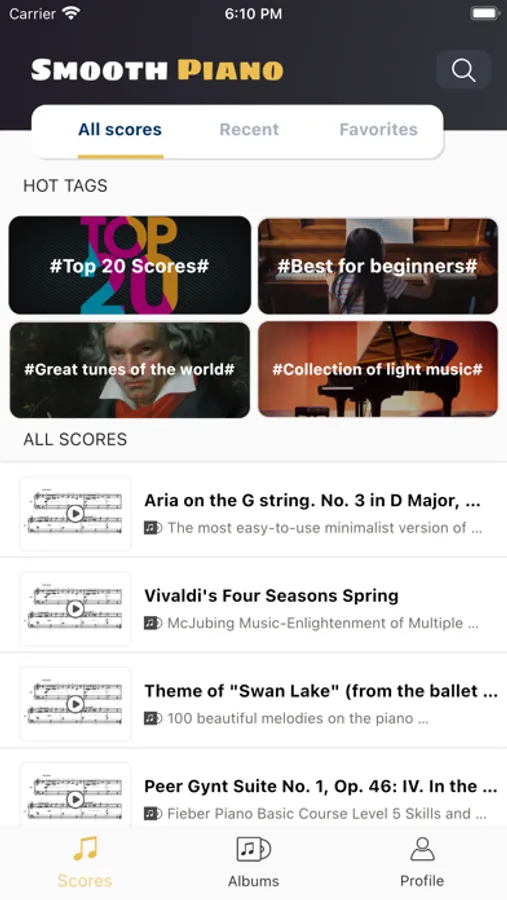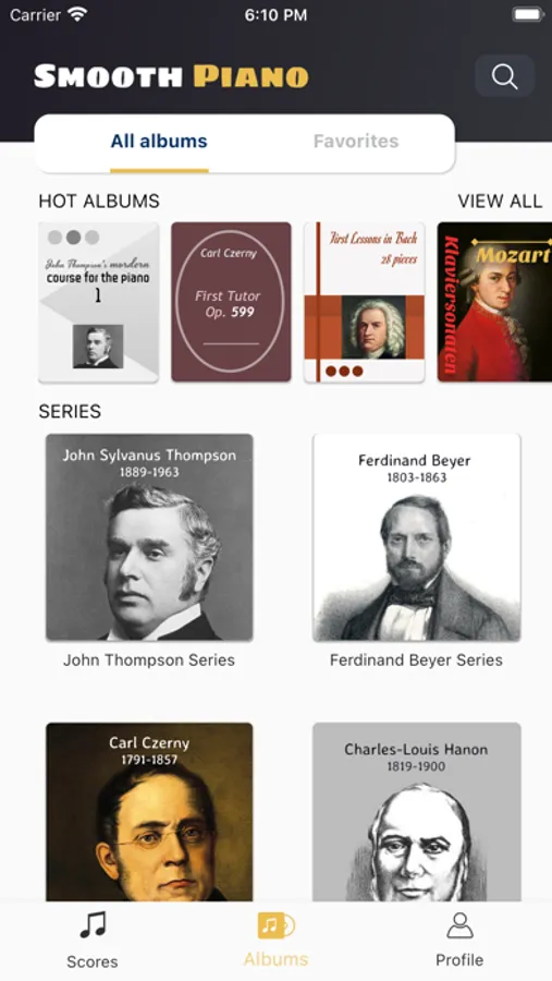 We have also added 43 albums, including collections by Czerny, Chopin, Bach, Thompson, Beethoven, Beyer, Liszt, and Hanon, among others. To better manage your albums and scores, simply sign in with Facebook to add them to your favorites and access them on all of your devices.