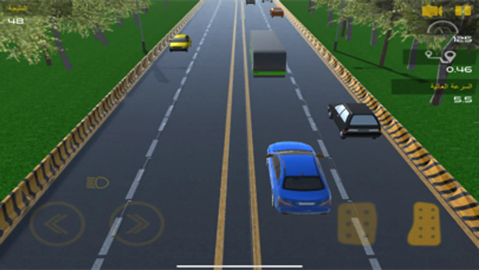 نمط الطريق ذو الاتجاه الواحد جميع السيارات تتحرك باتجاه واحد عند تجاوز السيارات تحصل على النقاط.