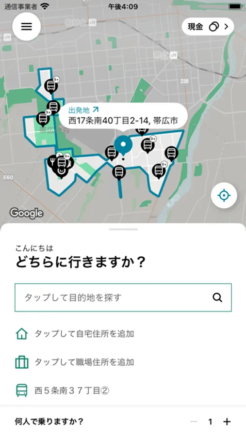 大空団地内は自宅から好きな目的地間を、団地の外ではバス停間を自由に移動できます。