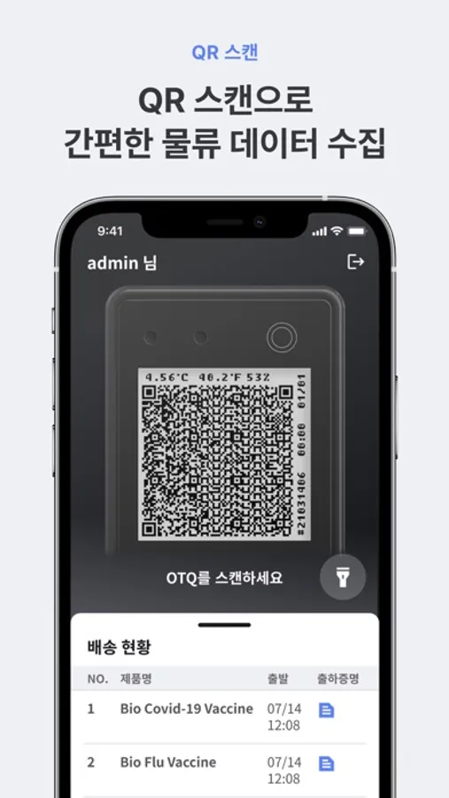 2. OTQ를 스캔하고, 박스에 부착된 배송바코드를 스캔합니다.