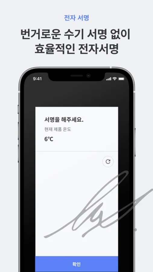 5. 수령시의 제품의 온도를 확인할 수 있으며 전자서명패드에 서명을 할 수 있습니다.