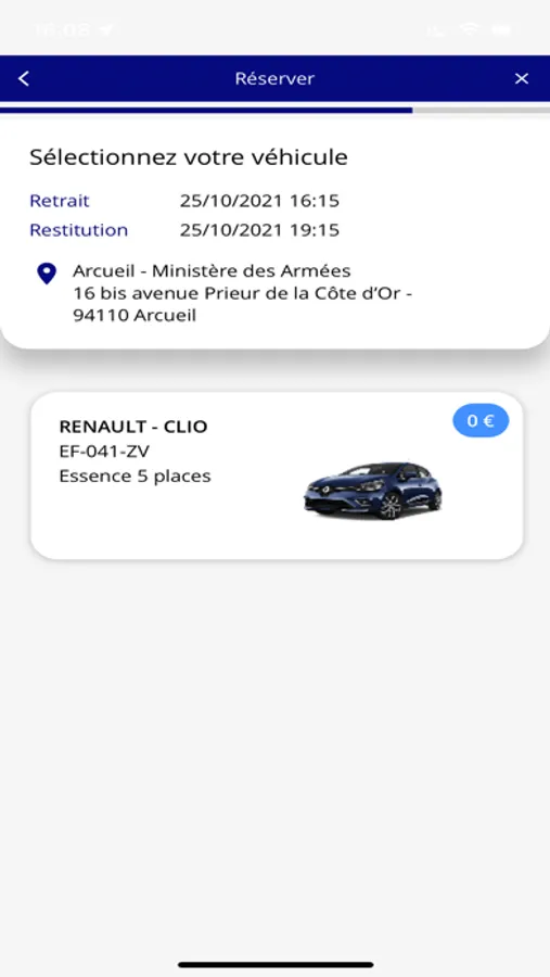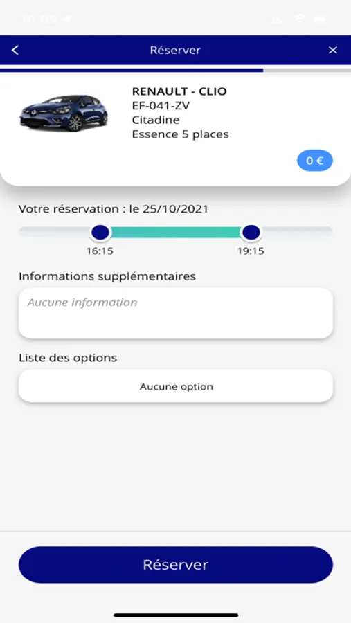 • Réservez votre trajet (date et heure de réservation et restitution, déplacement professionnel ou personnel*)