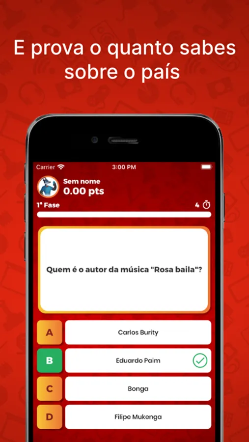 É um aplicativo ideal para se manter em contacto com a história, sociedade, cultura Angolana através de um quiz divertido.