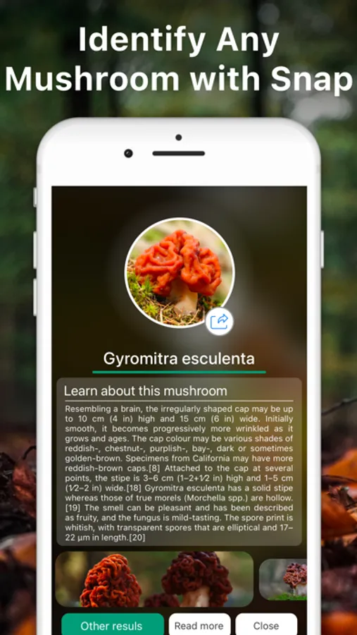 - Fast and accurate ID of numerous species of mushrooms.