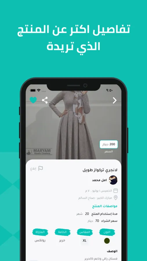 التطبيق يهتم في المرأة واحتياجتها وتوفير بيئة خضراء عن طريق بيع الملابس والشنط والاحذيه المستعملة او تأجيرها ، التطبيق يتميز في سهولة البحث عن المستخدمين ومتابعتهم والتفاعل مع اشعارات المستخدمين ويوفر ميزه حفظ الفيديو داخل الإعلان وحفظ الصور مع مشاركتها عبر وسائل التواصل الإجتماعي ويمكن المحادثه المباشرة مع المُعلن والتواصل معه والاتفاق من دون الحاجة الى رقم الهاتف عن طريق ايقونه المحادثه داخل البرنامج