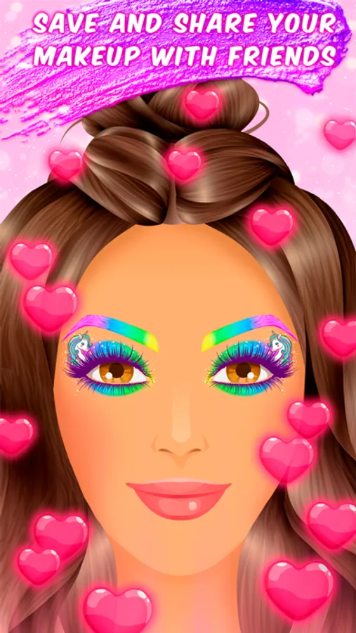 • Fashion stickers to makeup eyes: cute unicorns, flowers decore, snow makeup, animals makeup, stars, rainbow and hearts!
